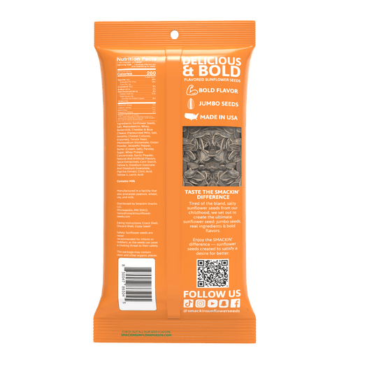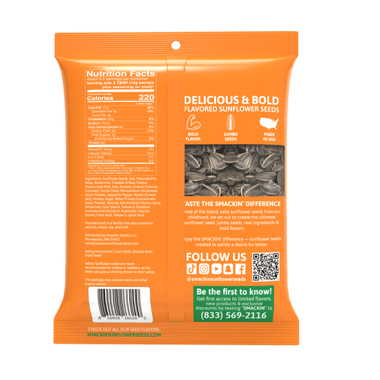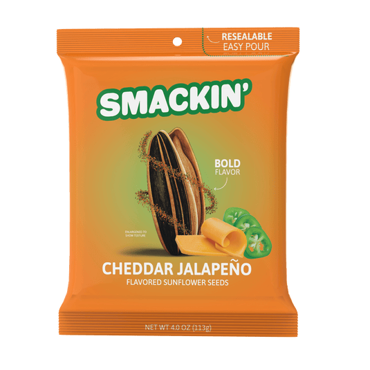 Introducing our Cheddar Jalapeño Sunflower Seeds – a flavor explosion that will tantalize your taste buds and leave you craving more! Made with our special blend of sharp cheddar and zesty jalapeño seasoning, these seeds deliver a perfect balance of cheesiness and spice in every bite. With just 70mg of sodium, 8g of protein, and 220 calories per serving, you can snack guilt-free while savoring the addictive combination of cheddar and jalapeño. Get ready to experience snacking nirvana with our Cheddar Jalapeño Sunflower Seeds – once you start, you won't be able to stop!