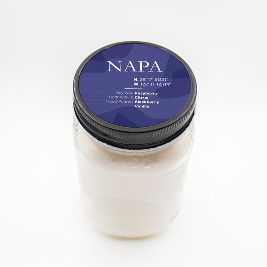 Beautifully fragrant hand-poured soy candles that are poured into an 8 oz or 16 oz lidded mason jar with a single wick. These strong scents are designed to perform exceptionally well with soy wax. Your 8 oz candle will burn for 40 glorious hours and your 16 oz candle will burn for 75 hours. Each candle is represented by a California city and the notes will also be listed for each fragrance.