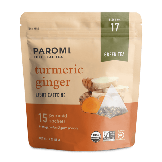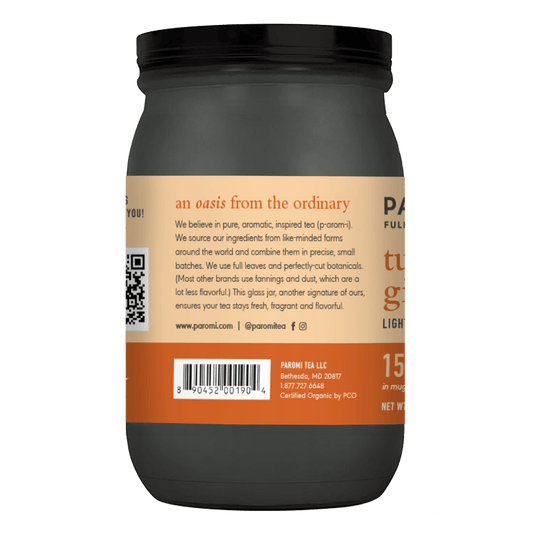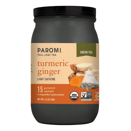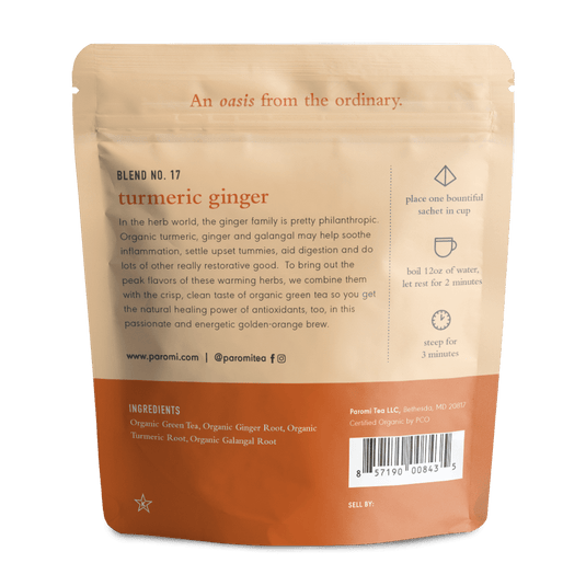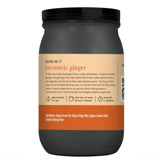 Organic Turmeric and Ginger Green Tea is a hand-picked, full-leaf green tea blended with warm and powerful turmeric, ginger, and galangal.