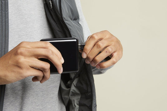 The latest generation of our power technology, designed to keep you warm all day. With the PWR5 plugged in, you will never leave home without a source of energy to power your jacket or mobile devices. This power bank is the fastest charging battery we have ever developed and optimally designed to be used with the following Kelvin coats: Sol and Apollo.