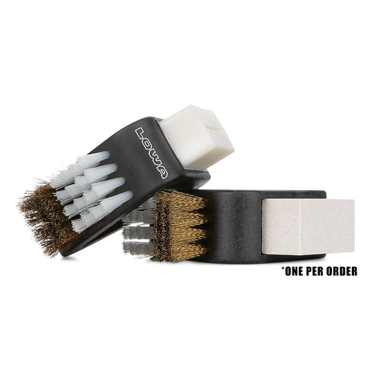 The LOWA TRIANGULAR BRUSH is a versatile brush for removing spots and soiling from shoe leather. The brass and nylon bristles make quick work even of stubborn soiling and can be used to roughen sue...