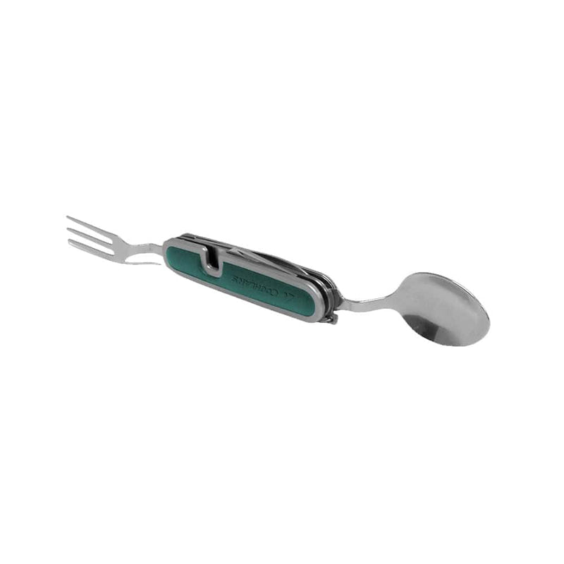 All the utensils you need in one handy tool. Coghlan's Folding Cutlery Set saves space in your pack and provides convenience when it's time to take a break and eat. The compact kit features a stainless-steel fork, spoon, knife, and bottle opener. It's the perfect personal tool to bring along on day hikes, backpacking trips, or to carry along when traveling.
