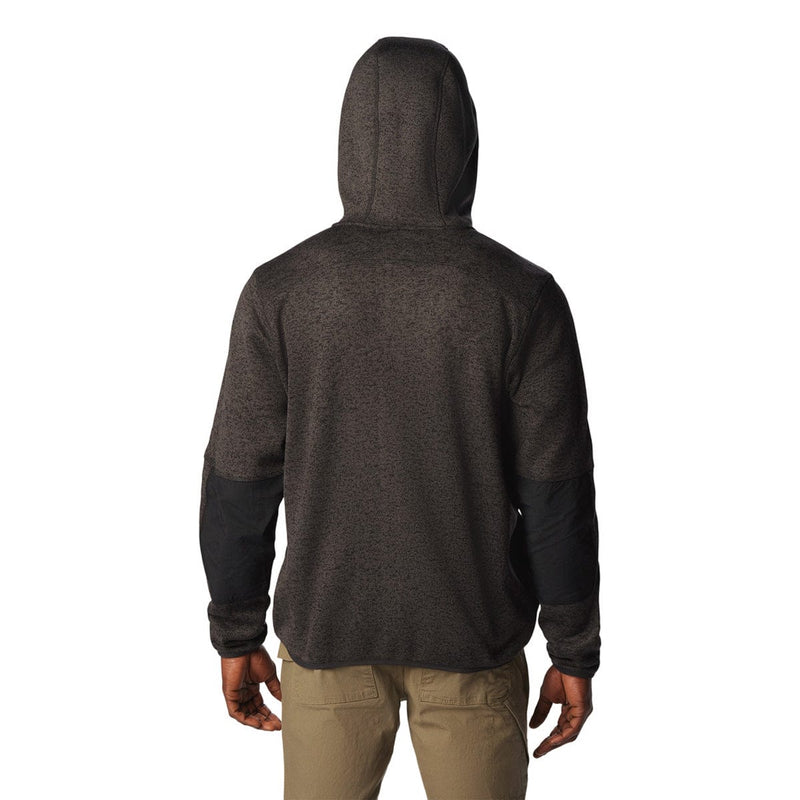 This jacket features soft sweater-like fabric, a fluffy fleece-lined hood, and reinforced elbows for tough protection.