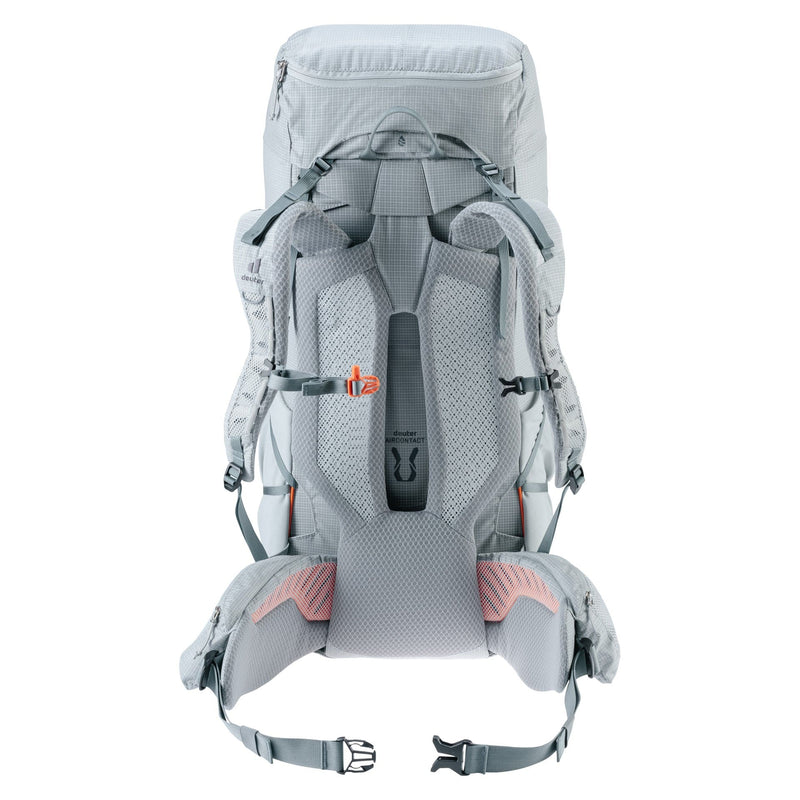 This lightweight backpack benefits from an outstanding comfort-to-weight ratio (with a removable lid and compression straps when every gram counts). The deuter Aircontact back system equally keeps the weight down, but above all creates ventilation across the back. The length of the back is adjusted via Clip & Loop system and ergonomic hip fins create a snug, comfortable fit while distributing the load effectively. The hard-wearing ripstop body fabric made from performance fibers is also built to withstand the rigors of thru-hiking.