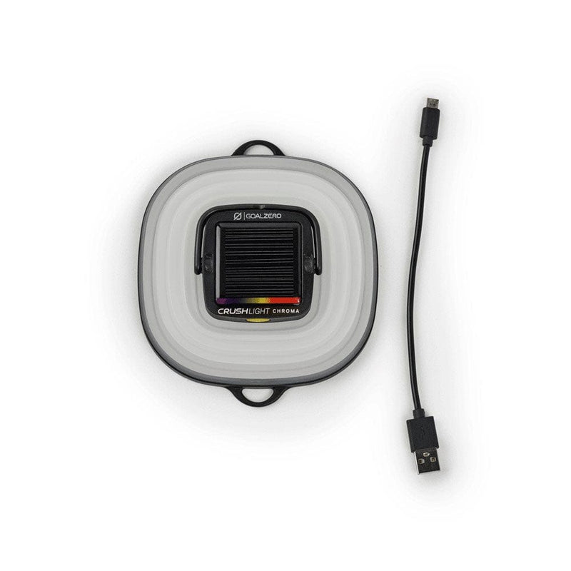 The Crush Light Chroma charges up with ease from any USB port via micro USB cable (included) and can be powered from the sun via its built-in solar panel.