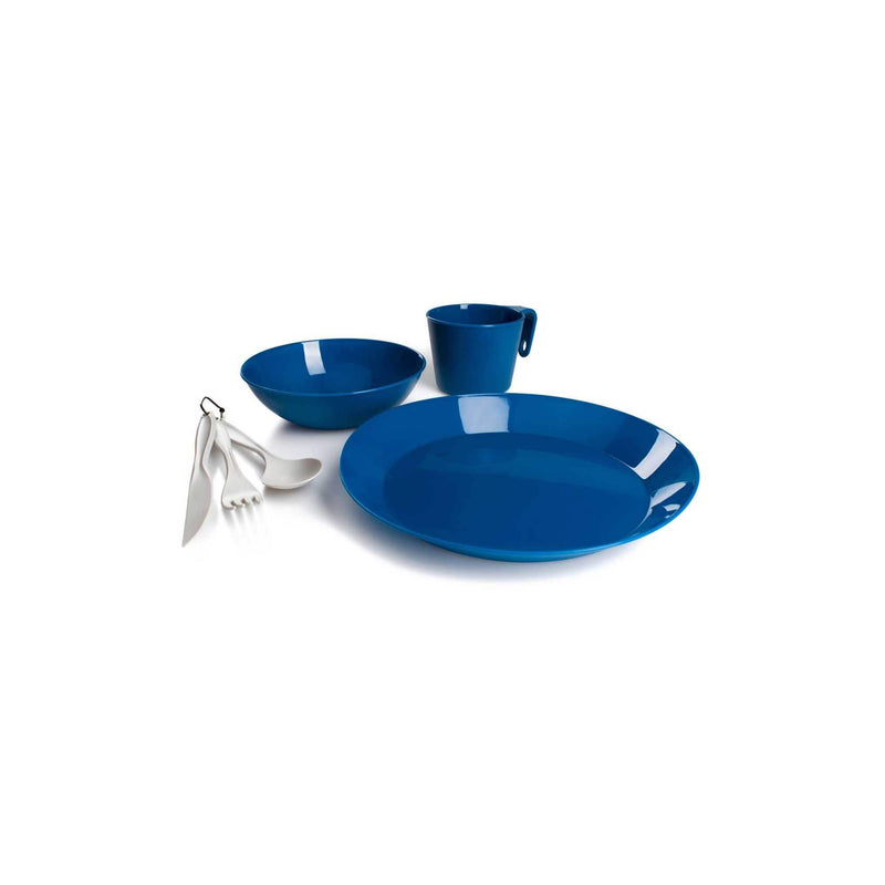 - Set includes: 6in. bowl, 9.5in. plate, 12 fl. oz. cup, tablespoon, fork, knife, plastic ring, mesh bag.