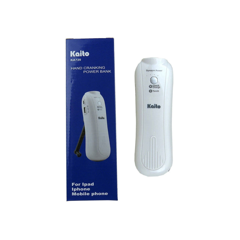 Compact , lightweight and self-contained, the KA720A from Kaito is a rechargeable back-up battery pack with a built-in 5,000 mAh Lithium ion battery and a hand crank power generator that provides power when you need it the most, ideal for both everyday and emergency use.