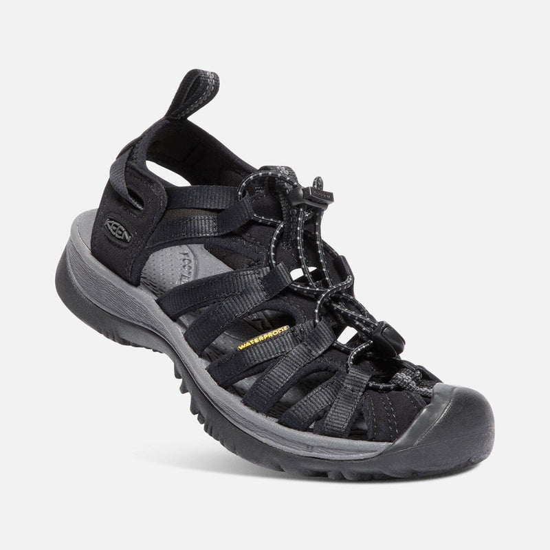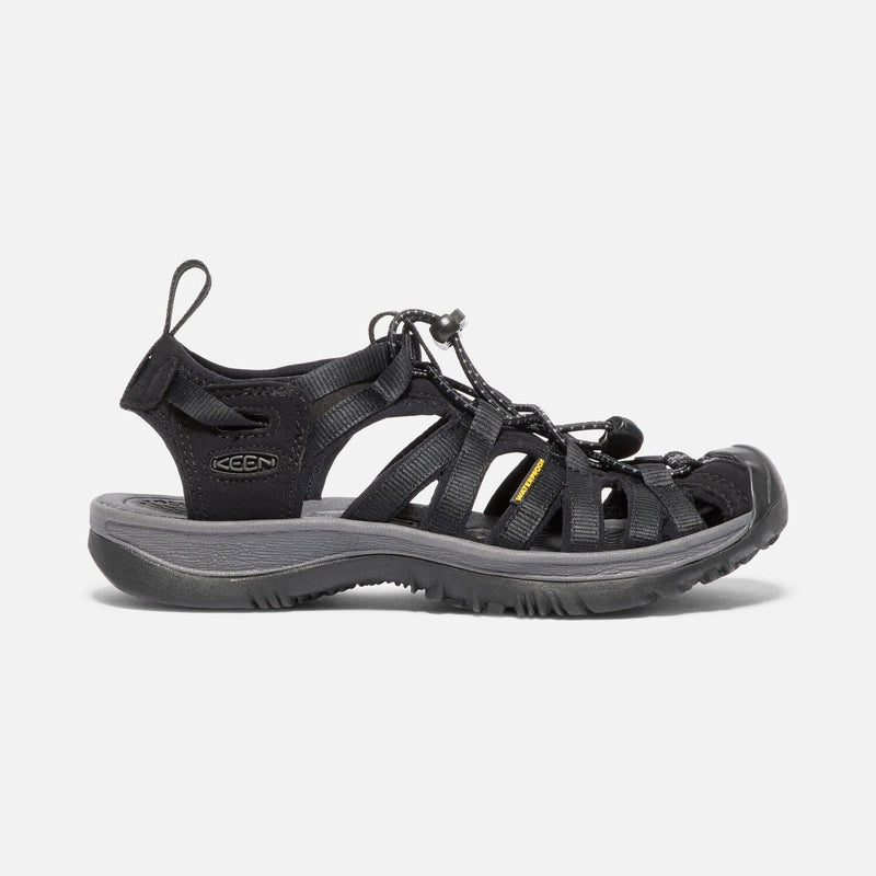 From hidden coves to rushing rivers, the Keen Women's Whisper Sandal can manage any water-filled adventure. The quick-draw elastic cord lacing system adjusts to a comfortable and secure fit. The washable polyester upper features the odor-reducing Aegis Microbe Shield®. The foot-cushioning EVA footbed provides comfort on the go.