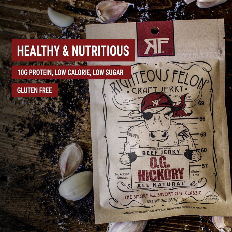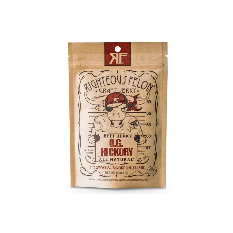 The Righteous Felon original recipe and sweet, smoky, hickory flavor that started it all. This O.G. classic hit the streets in '96 and the jerky game ain't been the same ever since.