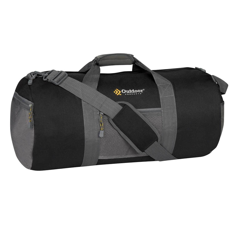 The sporty Outdoor Products Utility Duffle come in four sizes. Each feature a spacious cylindrical shape that makes it easy to pack loads of gear for weekend adventures, team sports events, gym workouts, car camping, and more. Included is a travel pouch for storing essentials like toiletries. When you load this duffel up you will like the duffles' removable padded shoulder strap for comfortable hauling. The Utility Duffel is constructed with durable webbing haul handles with neoprene grips on the top, and a handle on each end for versatile carrying options. Made of extra-durable, water-resistant, 300-Denier polyester, each bag has a large main compartment with a storm flap-protected zipper that helps ensure you contents stay dry. It also features two end pockets for storing smaller items and an easy-access front mesh pocket that is just right for keys, phone, or travel documents.