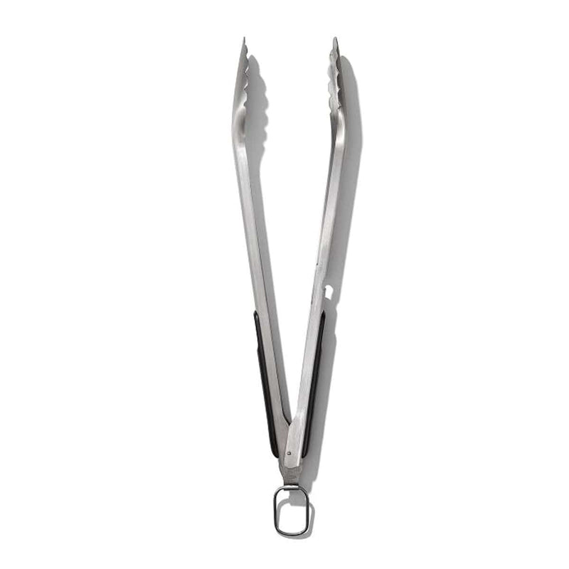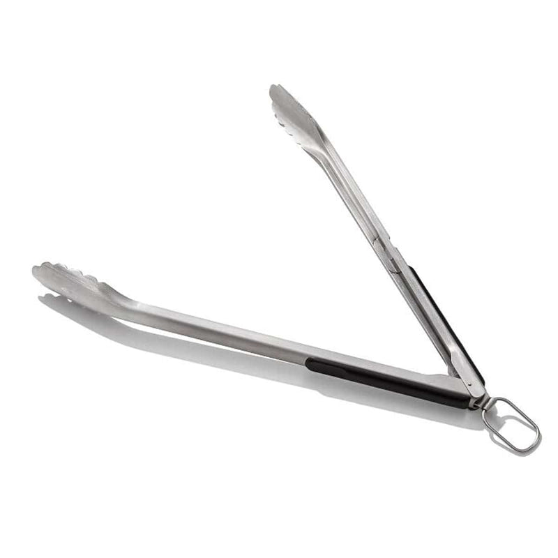 OXO Outdoor Grilling Tongs with Built-In Bottle Opener can hold their own over the busiest barbecues thanks to their durable, rust-resistant stainless steel construction. The Tongs have angled, scalloped heads and a soft, non-slip handle that won’t buckle under the weight of heavy food. The Tong’s handles feature a built-in bottle opener for grill-side convenience. When you’re done grilling, pull the small tab to lock them closed. Use the same pull-tab to hang the Tongs for storage. Dishwasher safe.