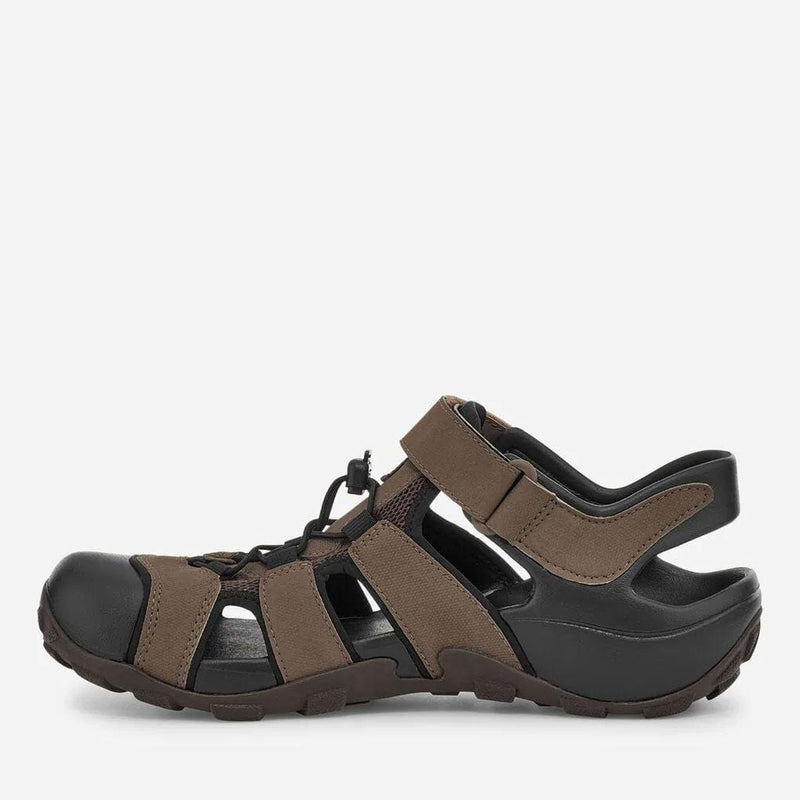 The sandal equivalent of an amphibian, the water-loving Flintwood is ready for both wet and dry adventures, engineered with injection molded EVA for comfort and lightweight construction, water-repellant materials, a quick-drying synthetic upper, and breathable mesh lining. Outfitted with multiple points of adjustability to dial in the perfect fit, this men’s sport sandal features a bungee cord lace to secure the foot in place.