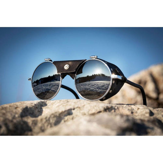 - Leather side shields : A special feature of glacier sunglasses, leather side shields have protected the eyes of generations of mountaineers and now create an unmistakably vintage look.