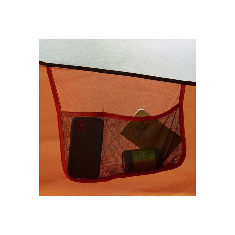 - Pre-attached guylines with storage pocket